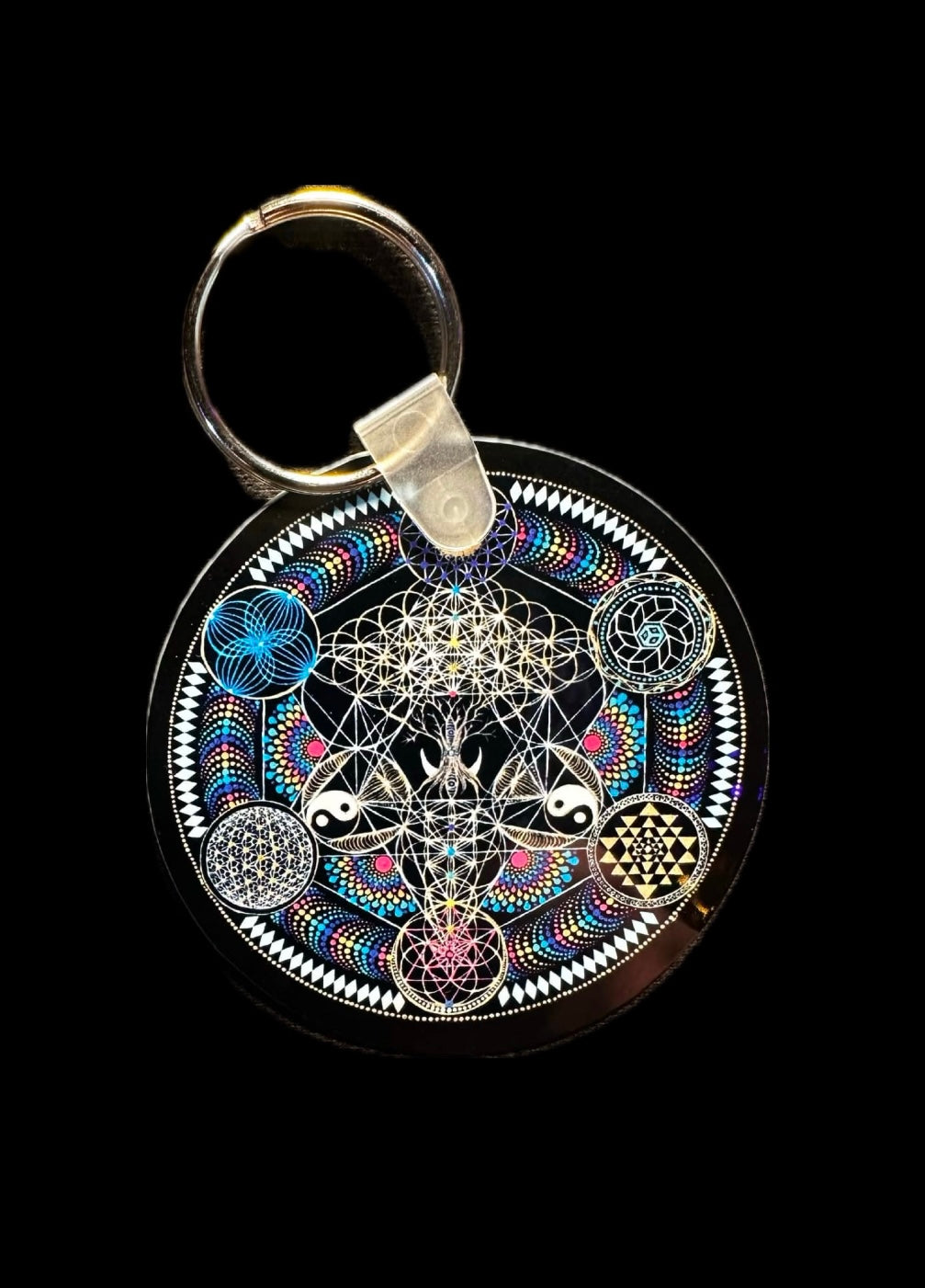 Hard rubber keychain with the hand painted Geometric Tree of Life on both sides